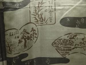 アンティーク 霞に文字模様肩裏本場村山泥大島紬男物羽織
