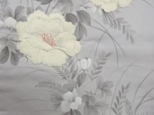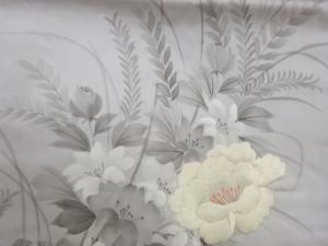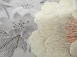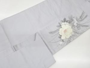 手描き花葉模様刺繍名古屋帯