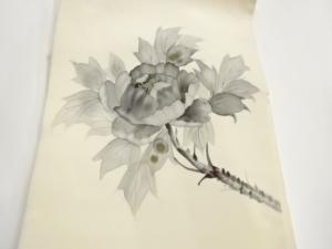 作家物 塩瀬金彩手描き抽象牡丹模様名古屋帯