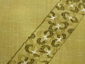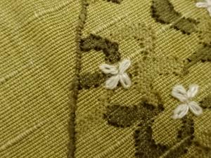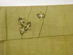 手織り紬斜め横段に抽象花々模様刺繍名古屋帯