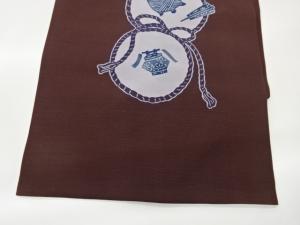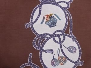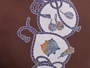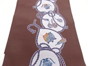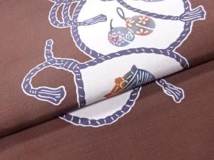 型染組紐丸文に鈴・糸巻き・灯籠模様名古屋帯