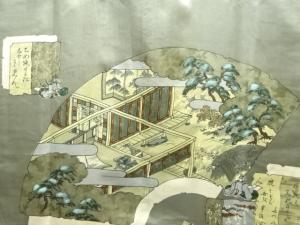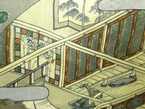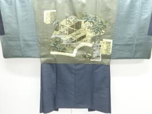 アンティーク 屋敷に平安人物模様肩裏本場村山泥大島紬男物羽織