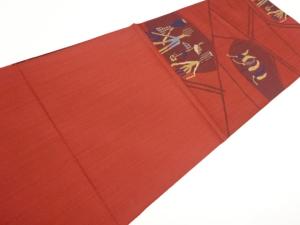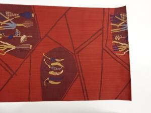 唐辛子・野菜・花葉模様織出し開き名古屋帯(額縁仕立て)