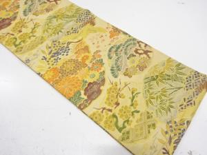アンティーク 雪輪に松竹梅・鶴模様織り出し丸帯(材料)