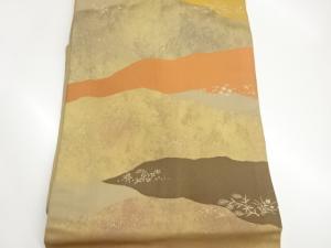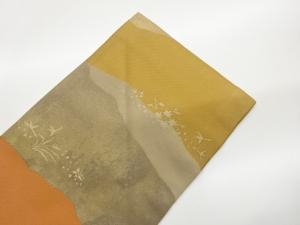 長谷川織物製 引箔草花に小鳥・変わり道長取模様織出し名古屋帯