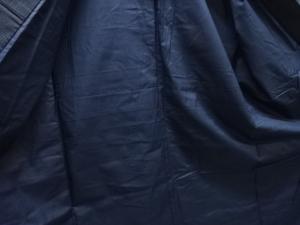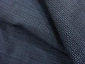 洗練された落ち着きのある色合いで、生地そのものは柔らかく、しわになりにくいと言われている。大島紬の特徴とも言える、織締めと呼ばれる技法で藍を用いて染められた糸を使用している。