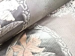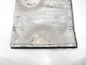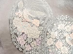 尾長鳥に花模様織り出し 袋帯