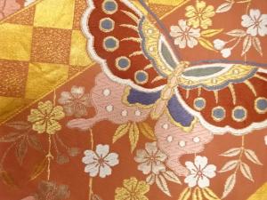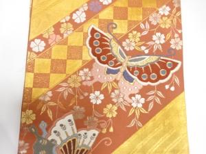 斜め縞に蝶・枝垂れ桜模様織り出し 振袖用袋帯