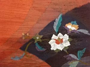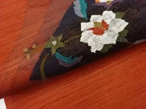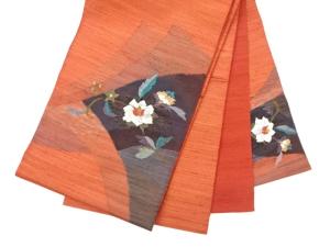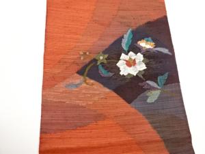 都製 手織り紬紙布花唐草に抽象模様織出し袋帯
