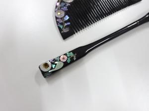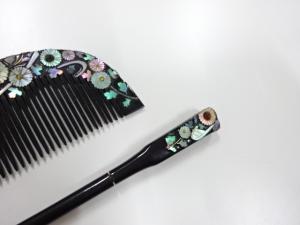アンティーク 漆塗り螺鈿 櫛・笄セット