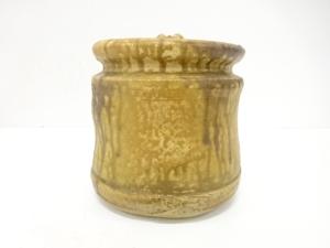 紀州焼 二代 寒川栖豊造 灰被 水指(十二代尋牛斎書付)(銘:布袋)