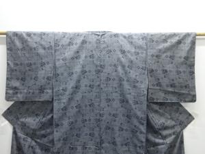 アンティーク 菊模様織出し本場正藍泥染大島紬着物(割り込み絣)