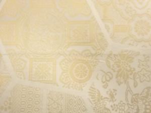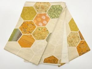 あらいそ製 切り嵌め亀甲に華文・草花・名物裂模様織出し袋帯
