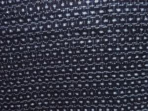 洗練された落ち着きのある色合いで、生地そのものは柔らかく、しわになりにくいと言われている。大島紬の特徴とも言える、織締めと呼ばれる技法で藍を用いて染められた糸を使用している。