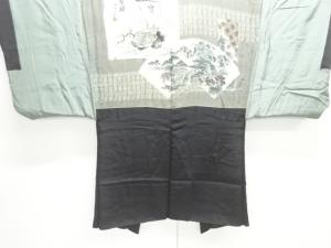 アンティーク 宝船に時代人物風景模様肩裏紋付羽二重男物羽織
