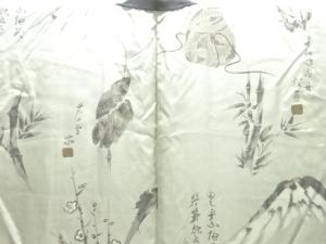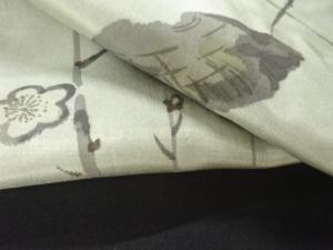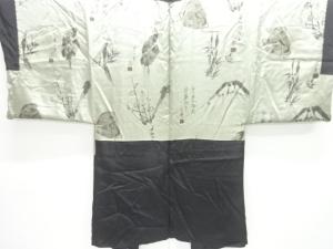 アンティーク カカシに枝梅・竹笹模様肩裏紋付羽二重男物羽織