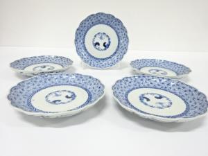 古伊万里 染付 みじん唐草 七寸皿 5客