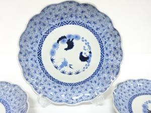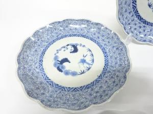 古伊万里 染付 みじん唐草 八寸皿 5客