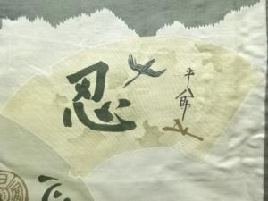 アンティーク 地紙に風景・鳥模様肩裏本場村山泥大島紬男物羽織
