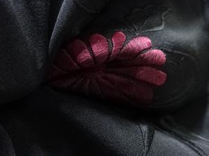 菊模様刺繍一つ紋絵羽織