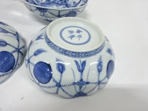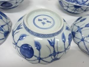 古伊万里 染付 瓔珞文 深皿五寸皿 6客