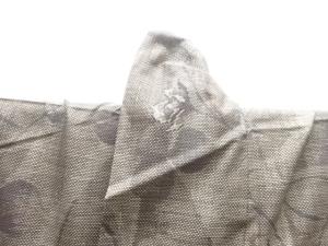 洗練された落ち着きのある色合いで、生地そのものは柔らかく、しわになりにくいと言われている。大島紬の特徴とも言える、織締めと呼ばれる技法で藍を用いて染められた糸を使用している。
