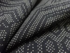 洗練された落ち着きのある色合いで、生地そのものは柔らかく、しわになりにくいと言われている。大島紬の特徴とも言える、織締めと呼ばれる技法で藍を用いて染められた糸を使用している。