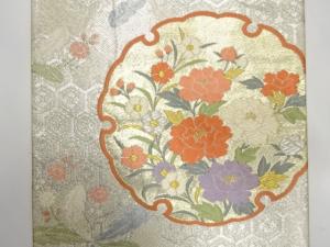 アンティーク 雪輪に牡丹・松藤模様織り出し袋帯(材料)