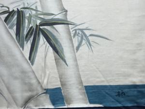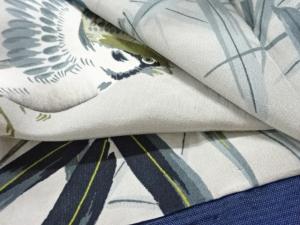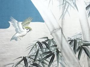 アンティーク 竹笹に雀模様肩裏手織り紬男物羽織