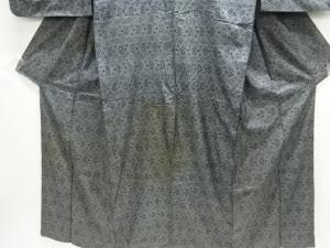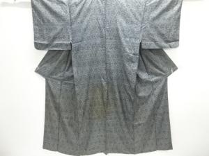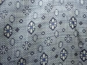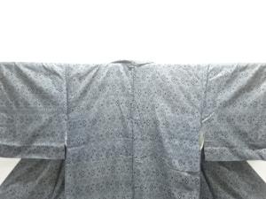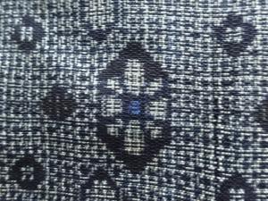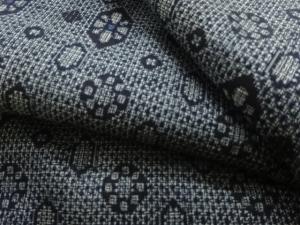アンティーク 亀甲に花模様織出し本場正藍泥染大島紬着物(割り込み絣)