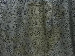 洗練された落ち着きのある色合いで、生地そのものは柔らかく、しわになりにくいと言われている。大島紬の特徴とも言える、織締めと呼ばれる技法で藍を用いて染められた糸を使用している。