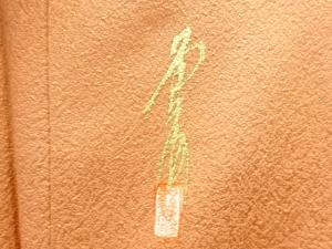 草木染 のり散らし模様織出し一つ紋色無地着物