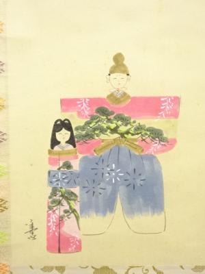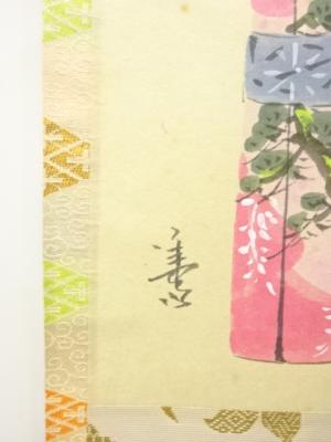 前大徳 矢野一甫筆 「立雛」 画賛 紙本肉筆掛軸