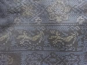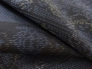 洗練された落ち着きのある色合いで、生地そのものは柔らかく、しわになりにくいと言われている。大島紬の特徴とも言える、織締めと呼ばれる技法で藍を用いて染められた糸を使用している。