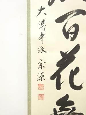 大徳寺派 前田宗源筆 「春風百花舞」 一行書 紙本肉筆掛軸