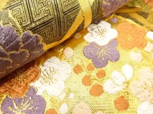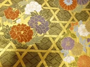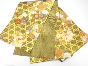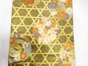籠目に花丸模様織り出し 振袖用袋帯