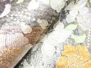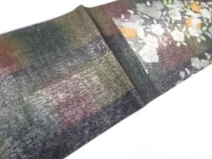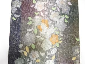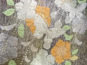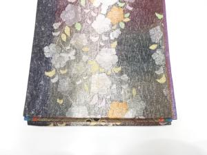 縞に枝垂れ花・蝶模様織り出し 振袖用袋帯
