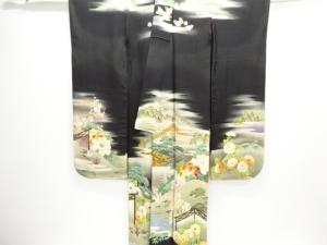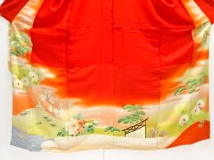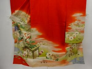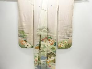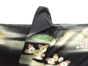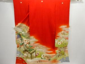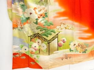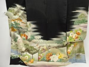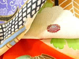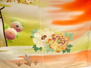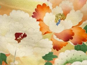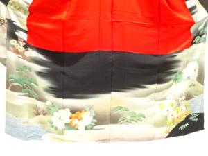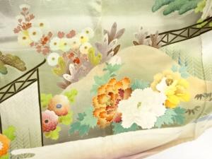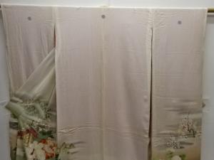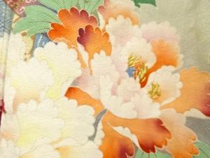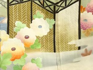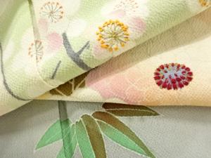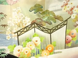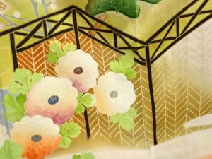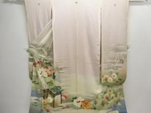 大正ロマン 錦紗草花に幕・御所車模様刺繍五つ紋花嫁衣装振袖3枚重ね