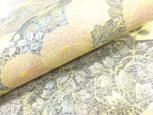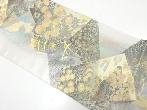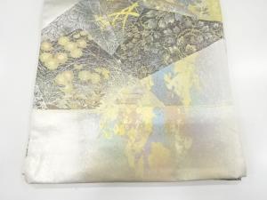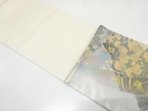 未使用品 藤沢機業製 引箔 切りばめ風 菊に秋草・梅模様織り出し袋帯(未仕立て)