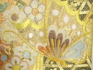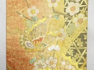 光悦垣に蝶・枝梅模様織り出し 振袖用袋帯