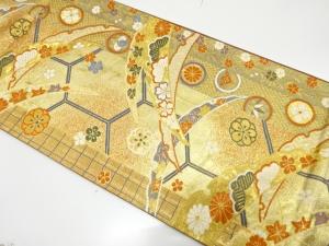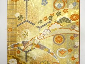雪芝に花・古典柄織り出し 振袖用袋帯
