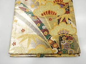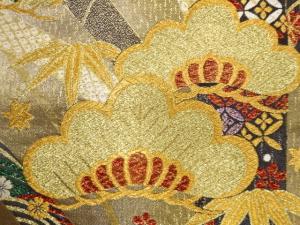 未使用品 笠松に竹笹・古典柄織り出し 振袖用袋帯