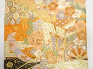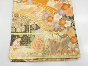 佐賀錦 橋に御所車・花・古典柄織り出し 振袖用袋帯