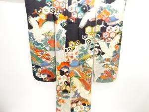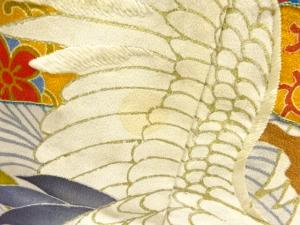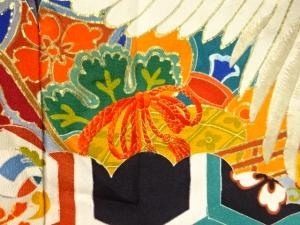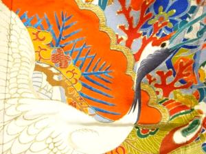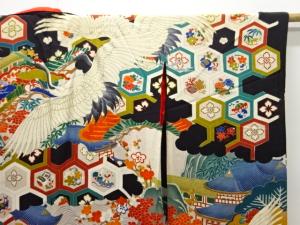 大正ロマン 錦紗鶴に花・宝尽くし模様刺繍五つ紋花嫁衣装振袖・中着セット