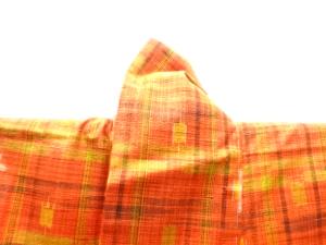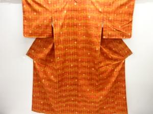 格子に絣柄織り出し手織り紬着物
