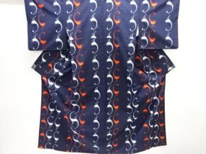 鶴模様織り出し手織り紬着物