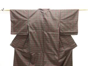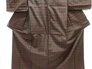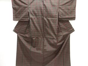 アンティーク 格子織り出し本場泥大島紬着物