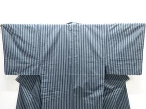 縞織り出し手織り紬男物着物