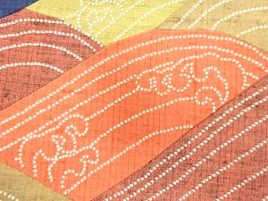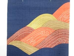 手織り紬 切りばめ 刺し子 荒波模様 開き名古屋帯(額縁仕立て)