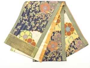 河瀬満織物製 雪輪に萩・花葉模様織出し袋帯